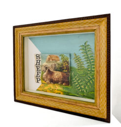 For several years Alan Brown was a picture framer in Westchester County, New York. His current body of work focuses heavily on using that same skill set, this time utilizing curious found objects, often items that have long outlived their known purpose or identity. The artist’s work encompasses sculptures, collages, and paintings; all created with the idea of reconstructing, enhancing, and reassembling as its central theme, not so much to discover the finished product, but rather for the basis of being enveloped in its process. Compositionally and with academic markers, the finished work gives new life to what is otherwise considered a collection of old childhood memories, and new and repurposed materials. Objects such as old frames, African sculpture, pages from 19th-century books, forgotten tools, and antique toys live collectively in Mr. Brown’s often satirical compositions. The artist develops multi-layers of colliding narratives as a draftsman; the finished work is both playful and introspective, in that the artist sees the possibility of the materials and the reinvention of the “forgotten object” while also offering a bit of Homage to the very material he reworks and saves from oblivion.