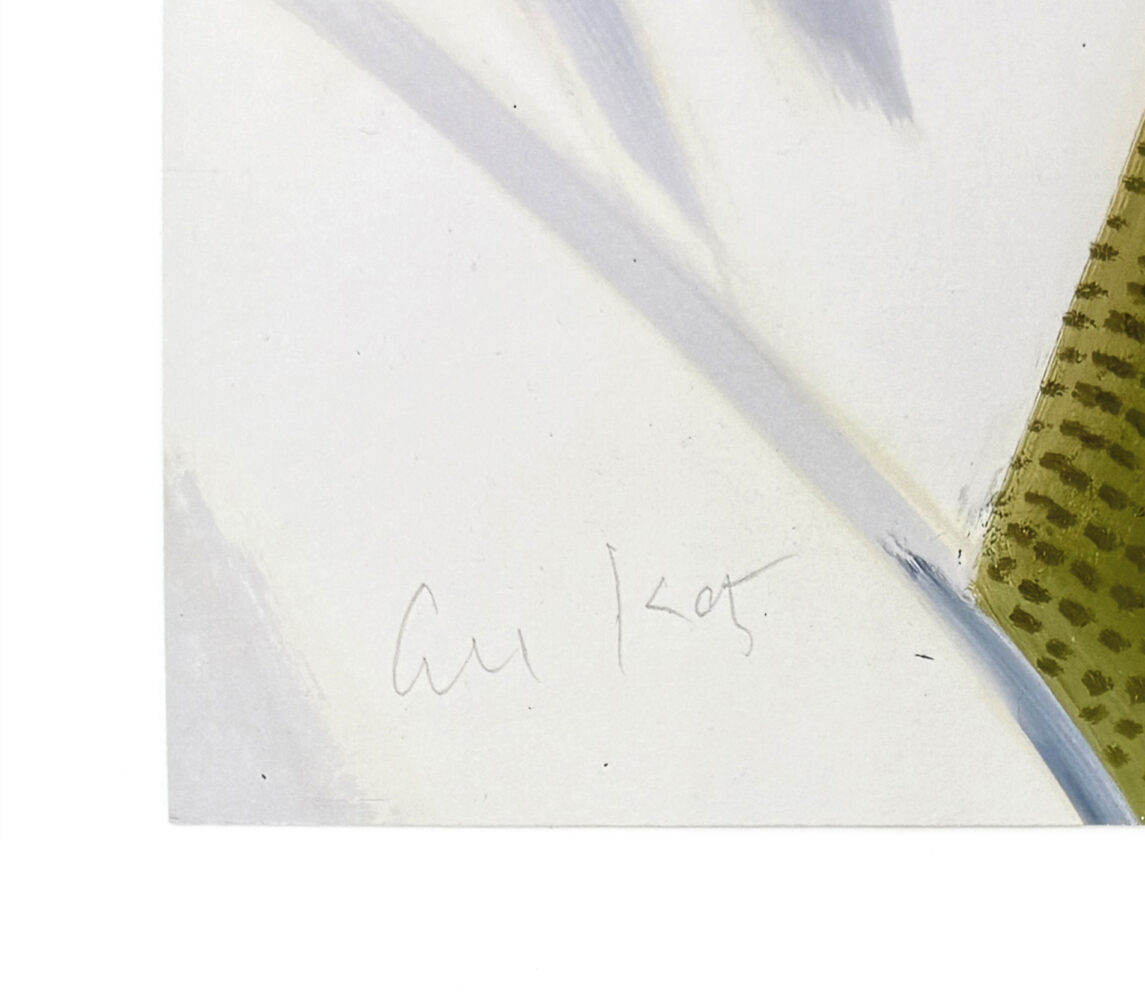 Archival pigment print in colors on Innova Etching Cotton Rag paper from White Shirt portfolio. Hand signed by Alex Katz lower left. Hand numbered 49/50 lower right (there were also 10 artist’s proofs). Artwork size: 26.25 x 14.875 inches. Frame size: 30 x 19 inches. Published by Lococo Fine Art, St. Louis, Missouri.