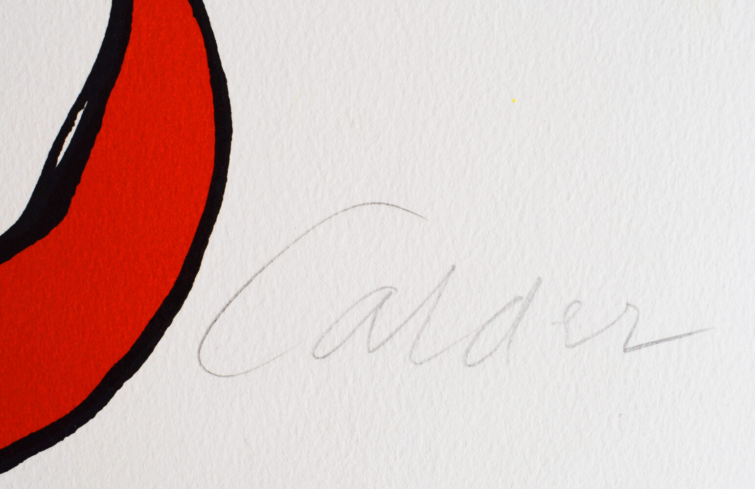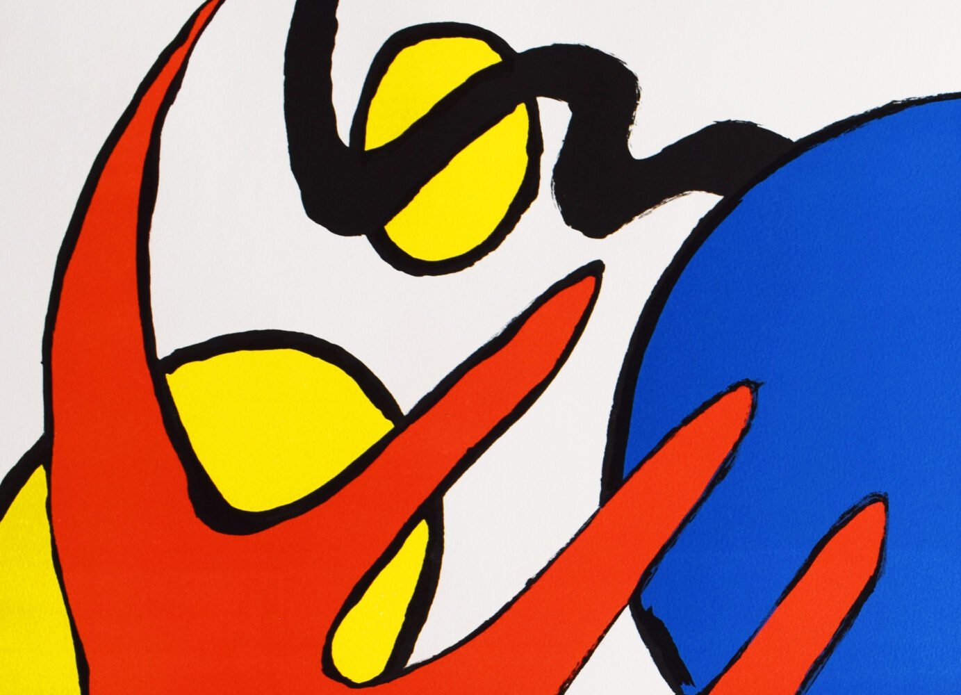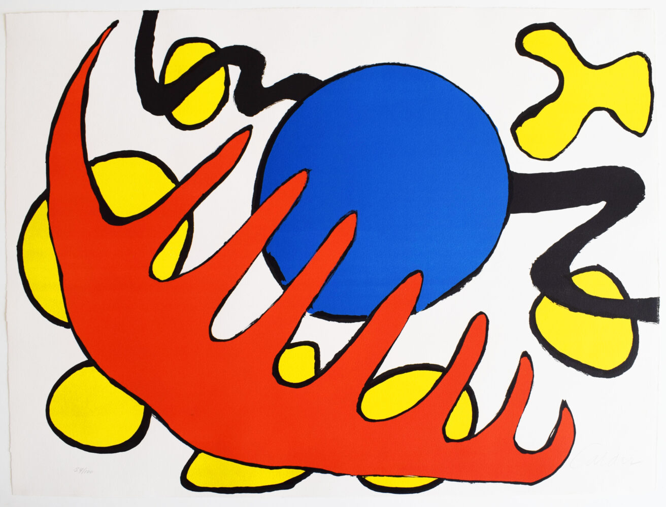 This original lithograph in colours is hand signed in pencil by the artist “Calder” in the lower right image.