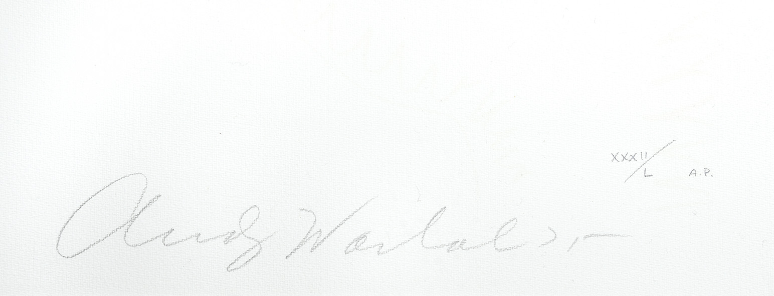 Edition of 50 artist’s proofs in Roman numerals aside from the edition of 250 in Arabic numerals. Signed, numbered and dated ’75 in pencil lower right on verso by Warhol. To create the Ladies and Gentlemen series, Warhol took over 500 Polaroid photographs of 14 different Black and Latin American drag queens and trans women recruited by his friends, many were from the Gilded Grape, a bar on Manhattan’s 8th Avenue. The names of 13 of the 14 models were discovered by the Warhol Foundation in 2014: Alphanso Panell, Broadway, Easha McCleary, Helen/Harry Morales, Iris, Ivette, Kim, Lurdes, Marsha P. Johnson, Michele Long, Monique, Vicki Peters and Wilhelmina Ross.