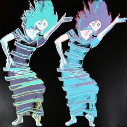 Warhol is renowned for his use of screen printing, also known as silkscreening or serigraphy. This technique involves transferring an image onto a mesh screen and then applying ink to create a print. Warhol’s use of screen printing allowed him to produce multiple, identical images with vibrant colours and crisp details. It became a signature method in his artistic practice.