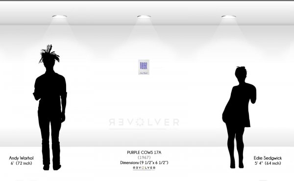 Purple Cows 17A is a small piece by Warhol that features twenty stamped purple cows that is smaller than a piece of printer paper. Underneath the purple cows, the name Andy Warhol is also stamped. This was the only time Warhol used a rubber stamp in print medium. This piece was part of a group bound portfolio entitled Stamped Indelibly. The other artists that were featured in the Stamped Indelibly portfolio were: Robert Creeley, Allen Ginsberg, Red Grooms, Robert Indiana, Allen Jones, Kenneth Koch, Josef Levi, Roy Lichtenstein, Gerard Malanga, Marisol (Marisol Escobar), Claes Oldenburg, Peter Saul, Andy Warhol, Tom Wesselmann and John Willenbecher.