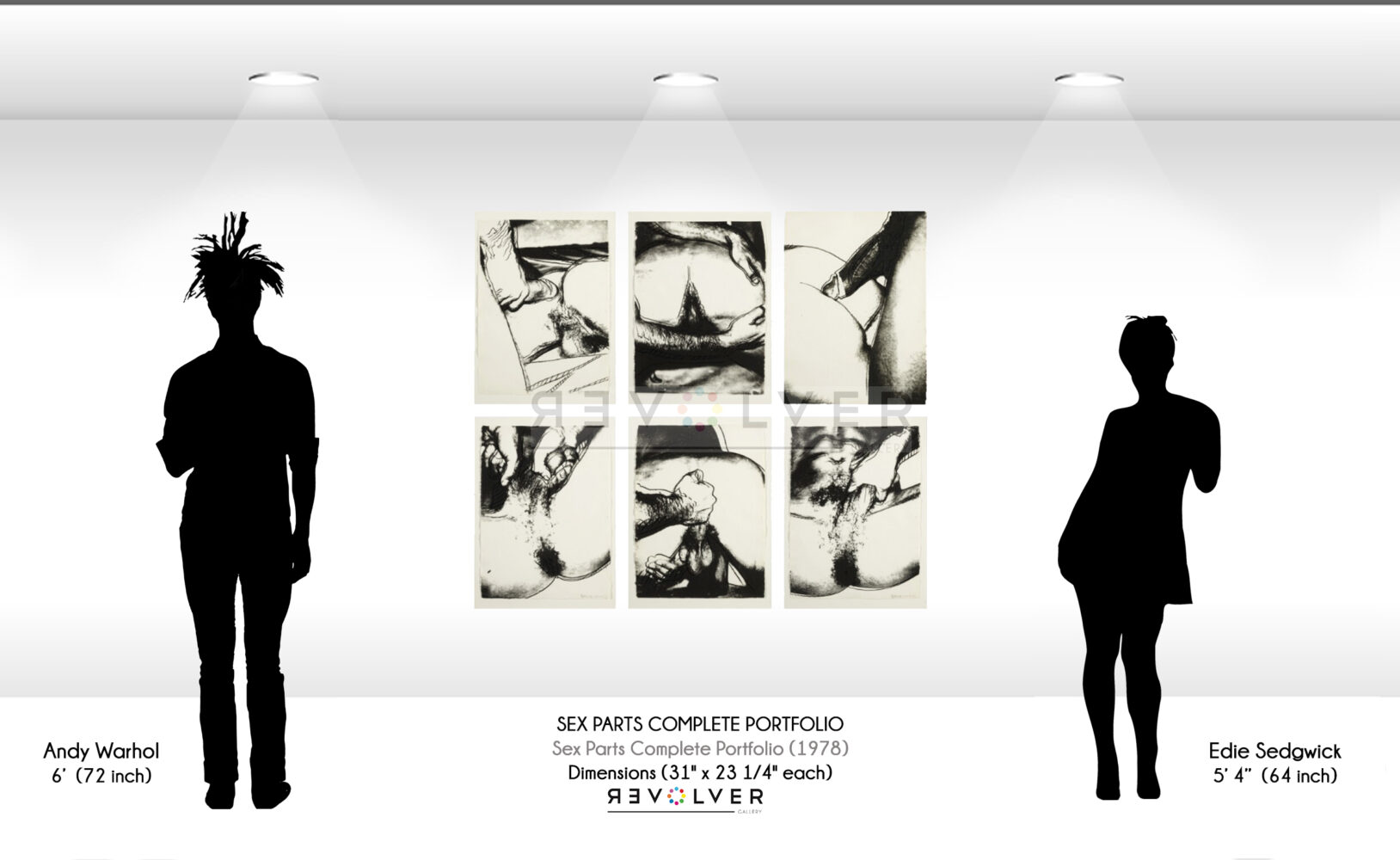 The Sex Parts complete portfolio by Andy Warhol comprises 6 screenprints, each delving into Warhol’s exploration of human sexuality and the human body. Created in 1978, these works exemplify Warhol’s continuous fascination with taboos and controversial subjects, presenting them in an uncensored, raw manner. Using his signature screenprint technique, Warhol decontextualizes his subjects’ bodies, focusing solely on the intimate parts and voiding the series of identity. Sex Parts prompts viewers to confront societal norms and personal discomforts while reexamining the human form as both an object of desire and a subject of critique.