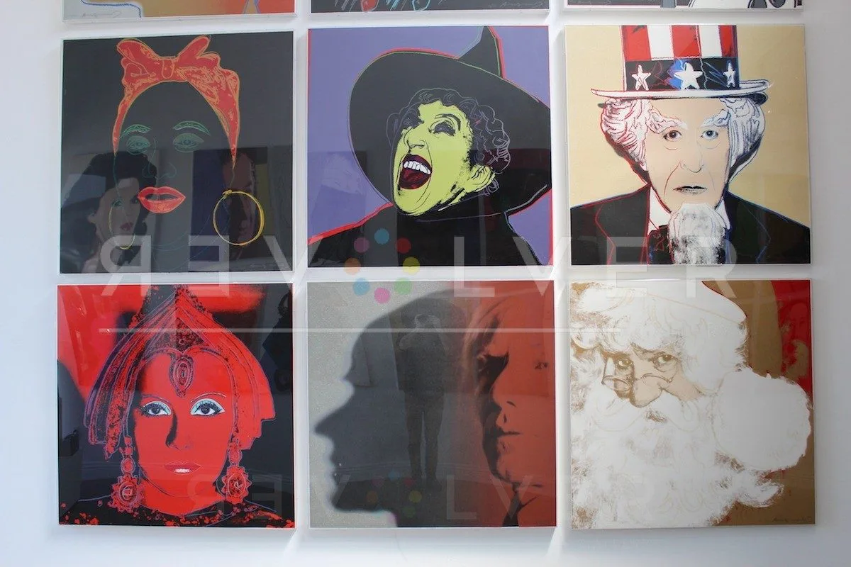Uncle Sam 259 is a part of 10 screenprints in the Myths series that exemplify Warhol’s unerring sense for the powerful motifs of his time. Most of the images in Warhol’s Myths series are taken from 1950s television or old Hollywood films. They portray the universal view of America’s once captivating and commanding past. Other pieces included in the series are characters loved by children such as Mickey Mouse, Howdy Doody, and Santa Claus, as well as fictional figures like Dracula, The Wicked Witch of the West, and Uncle Sam. While each of these characters has a strong, sometimes unpleasant persona, they are distinctly separated from reality. It has been said that Warhol considered each of these characters to be facets of his personality. Each of the ten works in Warhol’s Myths portfolio represents a different archetype of American popular culture, including Dracula, Santa Claus, Superman, and Uncle Sam.