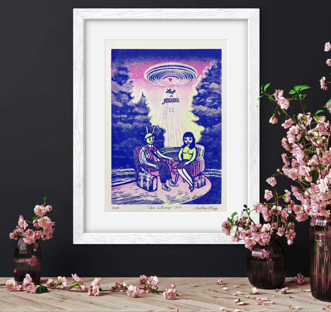 Medium: Hand drawn, hand pulled screen print on Canson 300gsm fine art paper, signed, numbered, and stamped on verso by the artist.