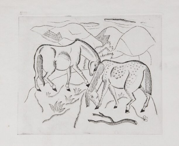 From 1918 – 1922 Carry Hauser lived in Vienna and in Passau. A leading figure in Expressionist artists’ groups Free Movement and The Rock Hauser was friends with the German painter and graphic artist Georg Philipp Wörlen with whom he worked on various publications. In 1919 he found a sponsor, the Viennese art critic Arthur Roessler who published his graphic book The Island.