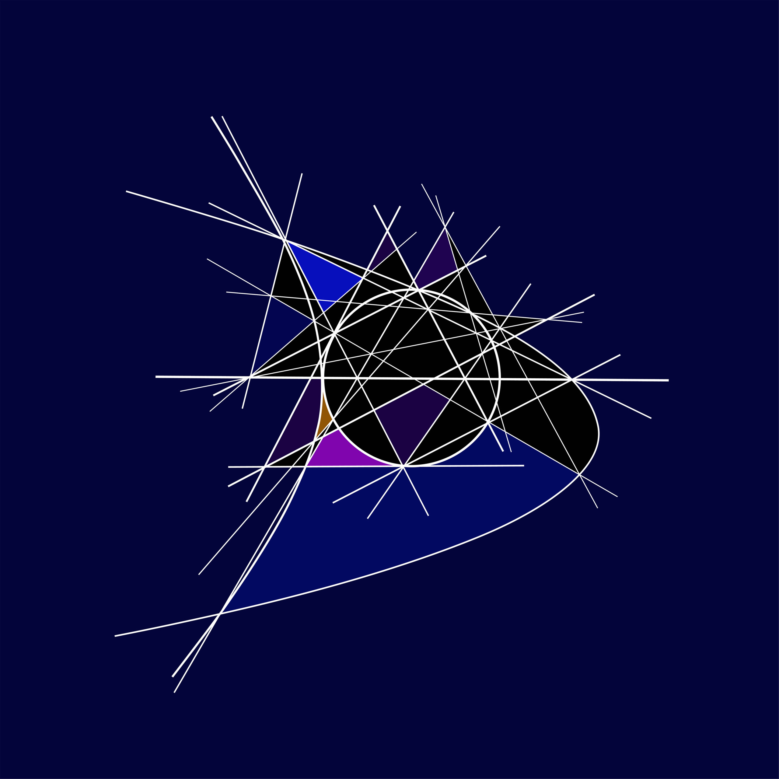 Hyperbola. Second Focus to Construct the Curve. 2025. Archival Ink on Canvas. 24 x 24 x 1.5 inches