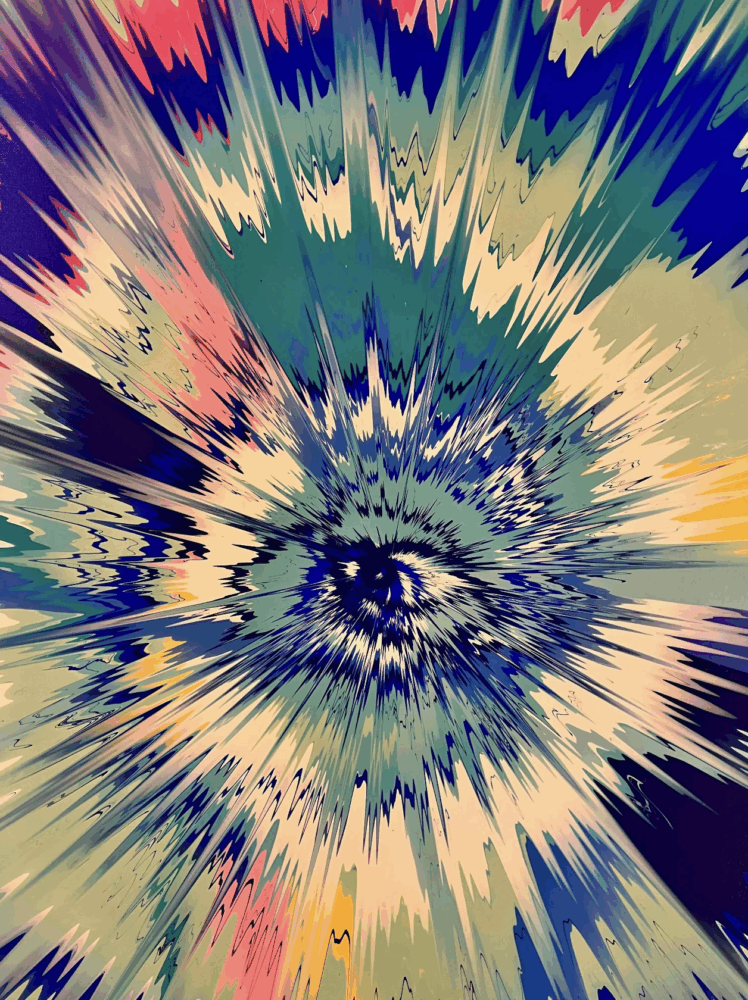 With Beautiful Equatorial Seabag Vapor Painting (2023), Damien Hirst continues his exploration of color and movement through a vibrant and unique composition. Executed as a giclée print on high-quality poly-cotton artist canvas and mounted on a birch plywood stretcher, the work combines technical precision with bold aesthetic impact.