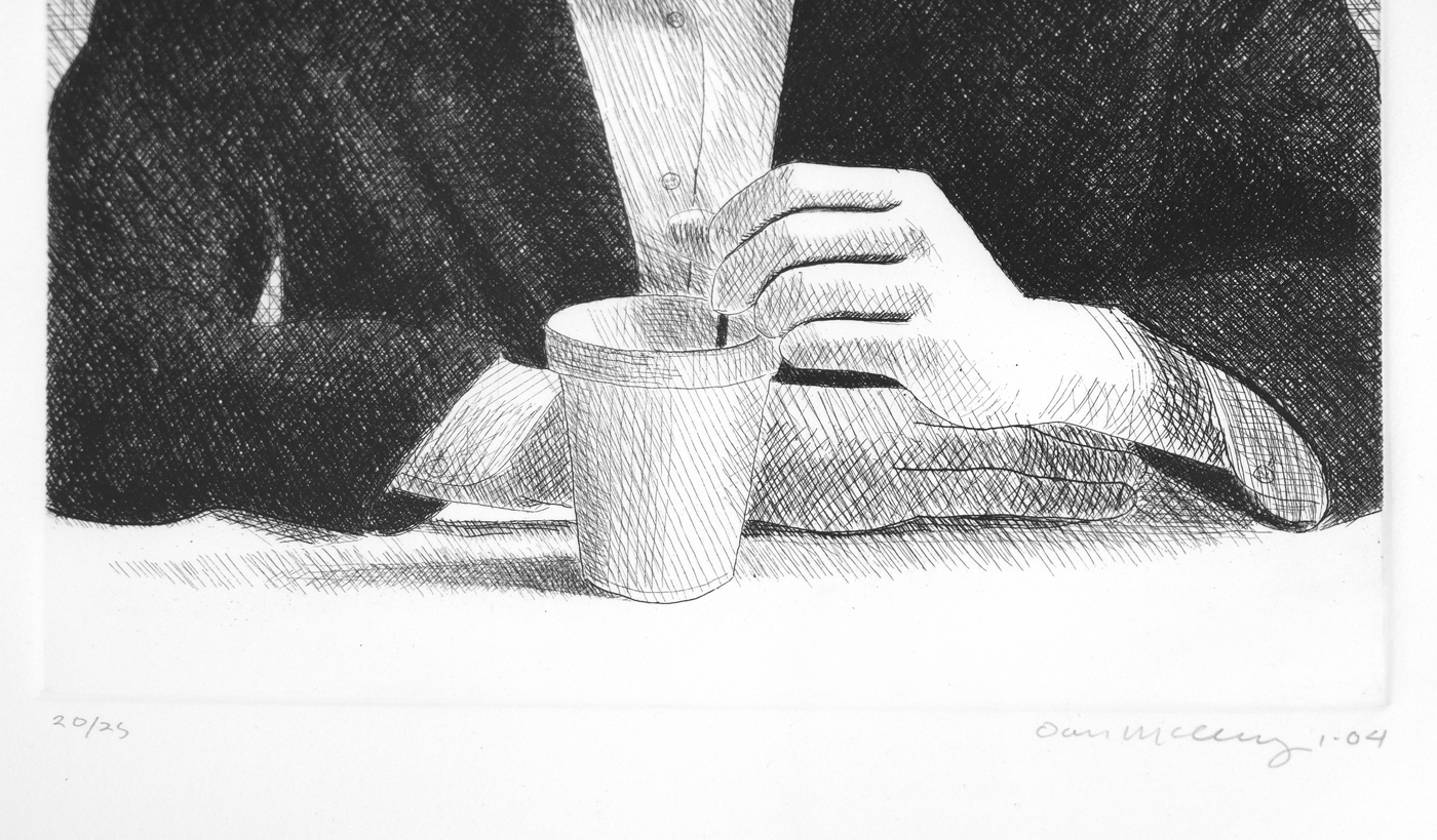 Dan McCleary's paintings, drawings and prints depict individuals, often alone and rendered life-size, engaged in daily activities at home, the office, a hair salon or restaurant.
