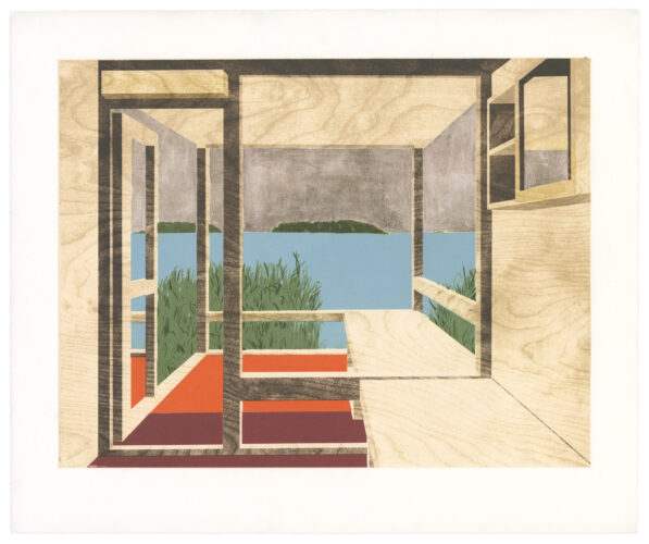 Collagraph, relief, screenprint, acrylic, and chine collé (on okawara) on Rives BFK white