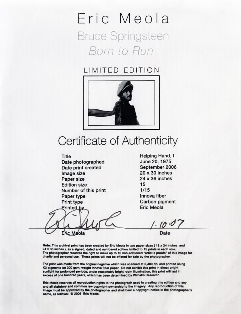 Helping Hand, I (Bruce Springsteen), rare signed print by Eric Meola