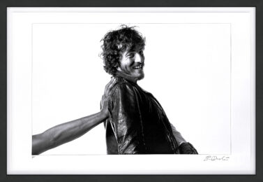 From Bruce Springsteen’s ‘Born to Run’ session. Photographed June 20th, 1975 and print created September 2006. Carbon pigment on Innova fiber paper. Hand signed and dated lower right by Eric Meola. Hand numbered 1/15 lower left. Sheet size: 24 x 36 inches. Image size: 20 x 30 inches. Frame size: 27 x 39 inches.