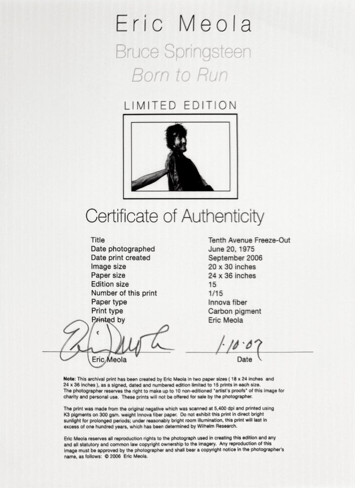 Home > Eric Meola > GallArt.com > Tenth Avenue Freeze-Out (Bruce Springsteen), rare signed print