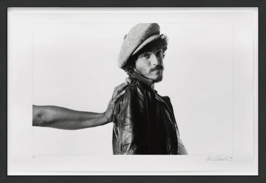 From Bruce Springsteen’s ‘Born to Run’ session. Photographed June 20th, 1975 and print created September 2006. Carbon pigment on Innova fiber paper. Hand signed and dated lower right by Eric Meola. Hand numbered 1/15 lower left. Sheet size: 24 x 36 inches. Image size: 20 x 30 inches. Frame size: 27 x 39 inches.