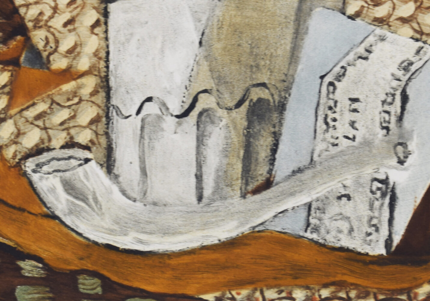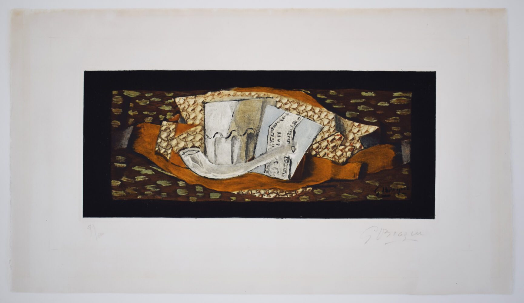It is based on Braque’s oil painting ” Nature morte au verre et à la pipe” from 1920.