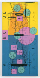 In addition to maps, other frequent themes include city grids, apartment floor plans, theatre spaces, and, as in this suite of cyanotypes, abstract patterns designating the use of space for working, praying, working out and other activities, that Kuitca adapted from the architecturally-based Neufert designs. The medium of cyanotype, linked to architectural practice, is particularly appropriate for the project’s theme, and the deep, textured blue tones lend both sensuality and spirituality to Kuitca’s meditation on the conduction of our daily ritualistic activities. The cyanotype process was first used by Graphicstudio in 1972 with Robert Rauschenberg and revived with this suite with Kuitca.