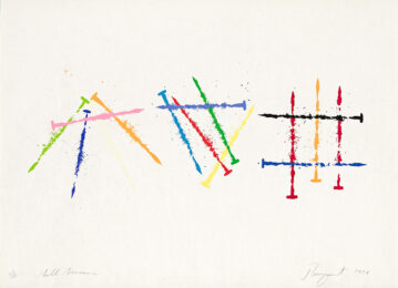 James Rosenquist has often been compared to fellow pop artists Roy Lichtenstein and Andy Warhol, though the unusual techniques he used ensured that his work remained unique. Rosenquist takes recognisable images and places them on a canvas overlapping each other. This technique puts well-known images into new contexts and makes what was familiar feel unfamiliar – a theme that runs through the Pop Art movement. His work was often irreverent, and he played with scale, drawing on his past experience working with billboards. He created works using prints and collages, again making use of familiar cultural images in an unusual context. In 2001, Rosenquist was inducted into the Florida Artists Hall of Fame. He died in 2017.