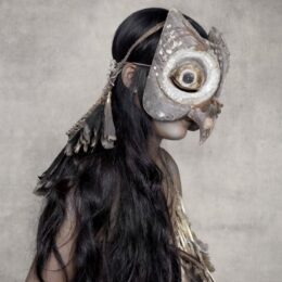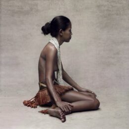 Known for her love of colour, Jamie uses black skin as the backdrop to colourful pigments and painterly brush strokes. Metallic Sudanese jewellery adorns the skin, for an additional study of texture and dimension.
