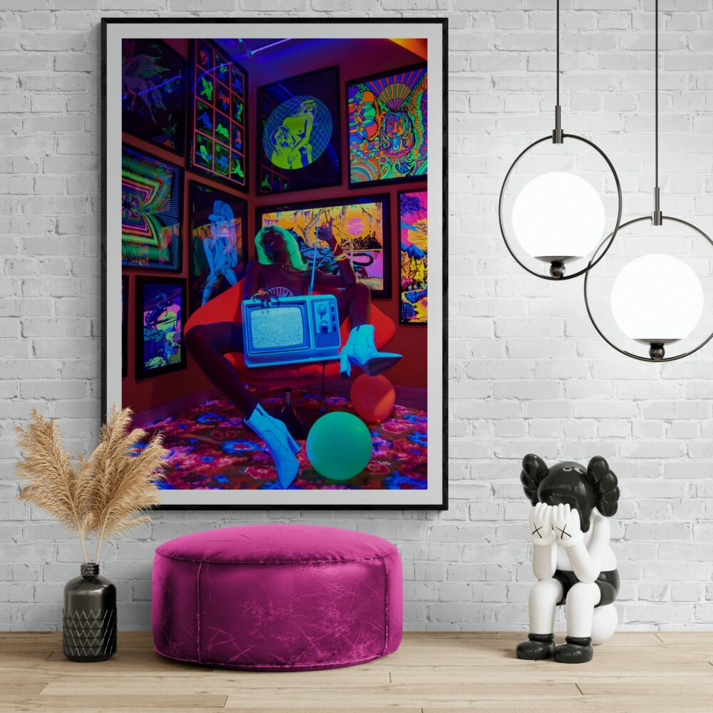 Using ultraviolet lighting, Jamie plays forensic investigator, revealing the sins of her subjects in a neon brilliance. Specialized UV reactive clothing, props, and makeup radiate light of their own, shedding light on to the sinner.