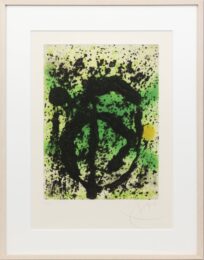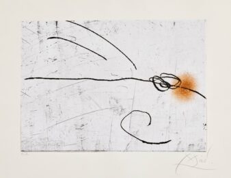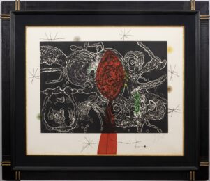 Joan Miró was a Spanish artist who was known for his abstract and surrealist artwork. He was active in the printmaking medium, creating lithographs, etchings, and linocuts. Miró’s prints often feature biomorphic shapes, bold colours and abstract patterns that are inspired by nature, and the subconscious mind.