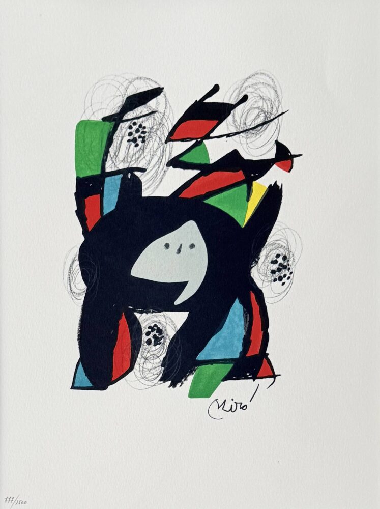 Printed by La Polígrafa, Barcelona, and Fequet et Baudier, Paris, each lithograph captures Miró’s sense of rhythm and imagination. The title, La Mélodie acide, evokes both energy and clarity — a vivid harmony between colour, form, and poetic movement.