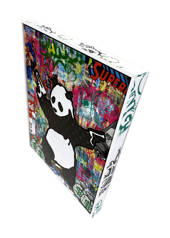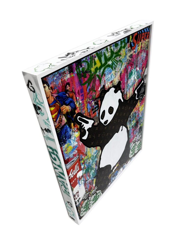 Original acrylic painting on canvas. Hand signed on front; signed and titled on verso by Jozza. Canvas size: 30 x 24 inches. Frame size: 31.62 x 25.75 x 2 (white floating frame hand painted by Jozza).