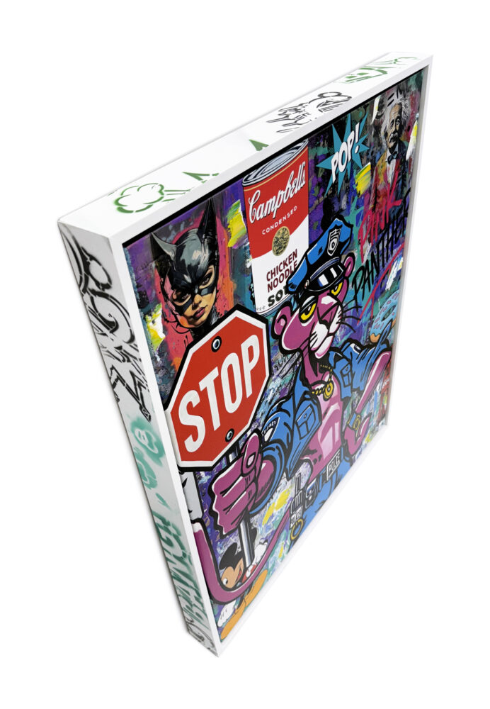 • Pink Law (Pink Panther), original painting with custom painted frame by Jozza