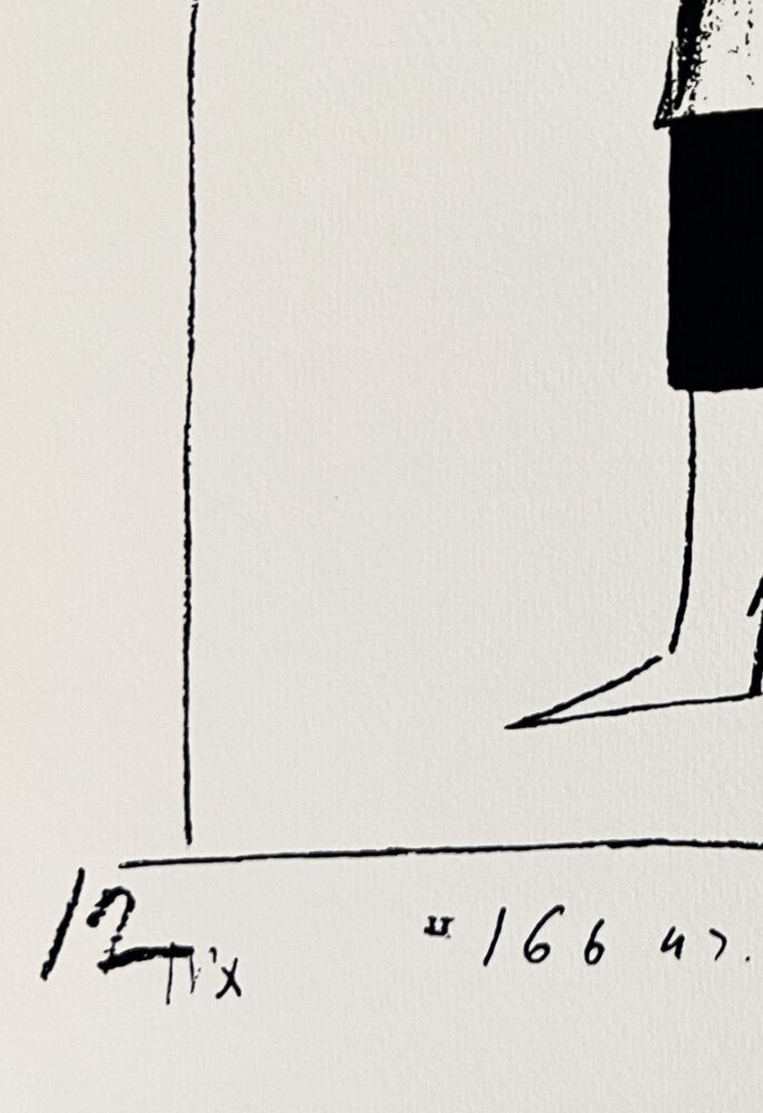 Malevich’s set designs for the opera are considered among the earliest expressions of the abstract visual language that would evolve into Suprematism. The 1973 edition was published by Galerie Gmurzynska in Cologne as part of a limited commemorative portfolio of 15 screenprints, celebrating Malevich’s visionary contribution to modern art and theater.