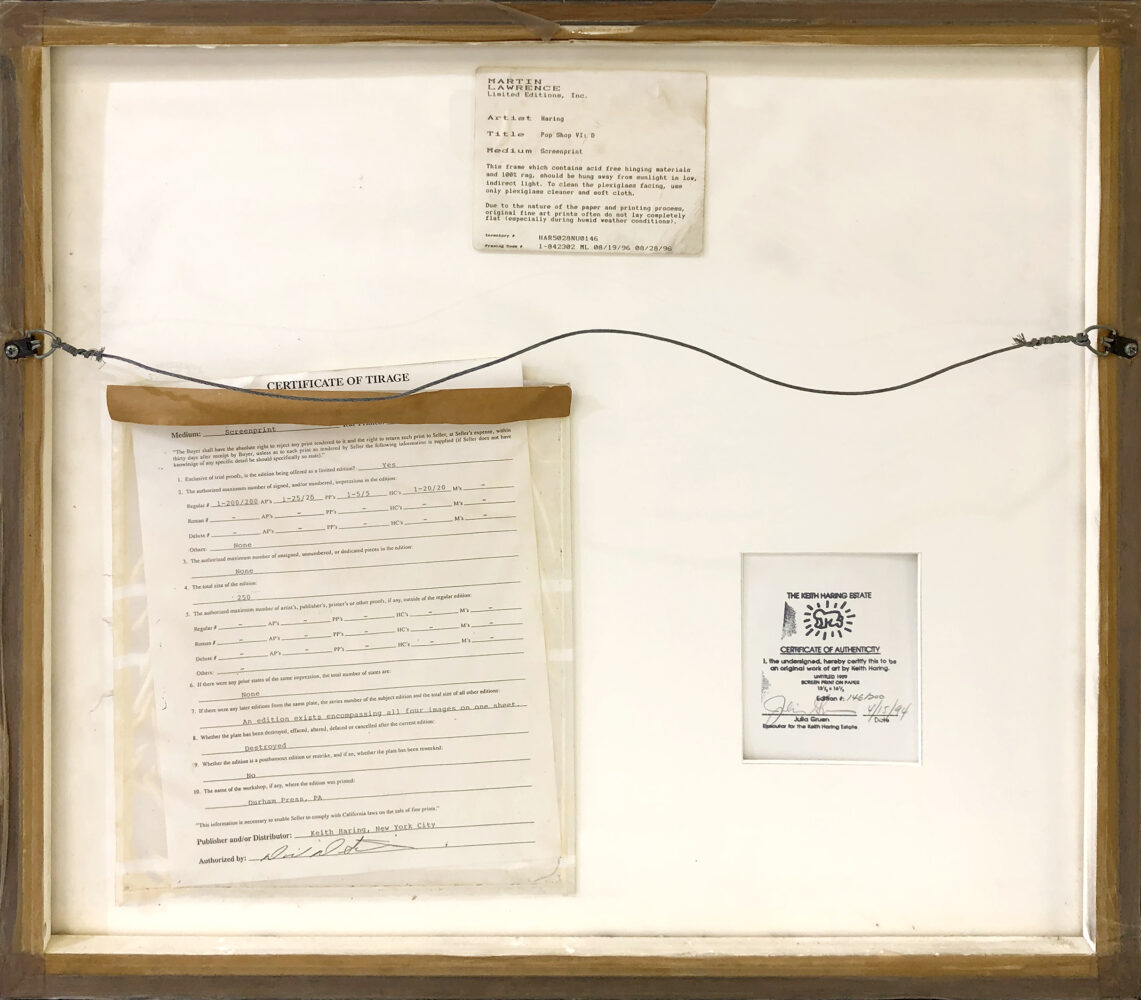 About the Artist: Keith Haring (American, 1958–1990) was an artist and social activist known for his illustrative depictions of figures and symbols. His white chalk drawings could often been found on the blank poster marquees in New York’s public spaces and subways. “I don’t think art is propaganda,” he once stated. “It should be something that liberates the soul, provokes the imagination and encourages people to go further. It celebrates humanity instead of manipulating it.” Born on May 4, 1958 in Reading, PA, he grew up in neighboring Kutztown, where he was inspired to draw from an early age by Walt Disney cartoons and his father who was an amateur cartoonist. After briefly studying commercial art in Pittsburgh, Haring came across a show of the works of Pierre Alechinksy and decided to pursue a career in fine art instead. He moved to New York in the late 1970s to attend the School of Visual Arts, and soon immersed himself in the city’s graffiti culture. By the mid-1980s, he had befriended fellow artists Andy Warhol, Kenny Scharf, and Jean-Michel Basquiat, and collaborated with celebrities like the singer Grace Jones. Diagnosed with HIV/AIDS in 1988, Haring’s prodigious career was brief, and he died of AIDS-related complications on February 16, 1990 at the age of 31. Before his death, Haring established the Keith Haring Foundation, a non-profit committed to raising awareness of the illness through art programing and community outreach. Throughout his career, Haring made his art widely available through the location of his murals, as well as through the Pop Shop—Haring’s own storefront which he used to sell his memorabilia. The artist’s mural Crack is Wack (1986), can still be seen today on a retaining wall along FDR Drive in Manhattan. Haring’s works can be found in the collections of The Museum of Modern Art in New York, the Los Angeles County Museum of Art, the Art Institute of Chicago, and the Smithsonian American Art Museum in Washington, D.C.