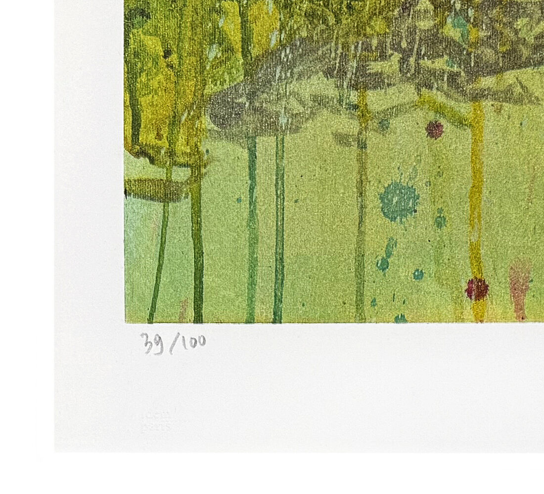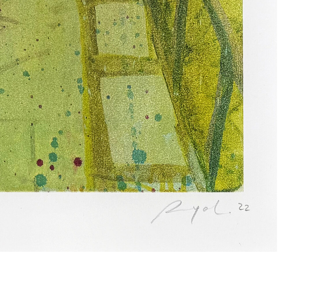 19 color lithograph on BFK Rives 270g paper with hand-cut edges. Hand signed and dated lower right by Laksamana Ryo (RYOL). Hand numbered 39/100 lower left. Artwork size: 35.8 x 28.3 inches. Frame size: 37.75 x 30.5 inches.
