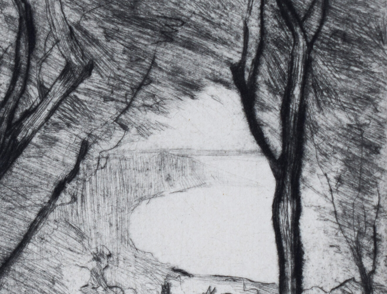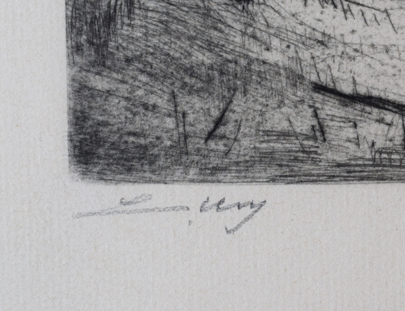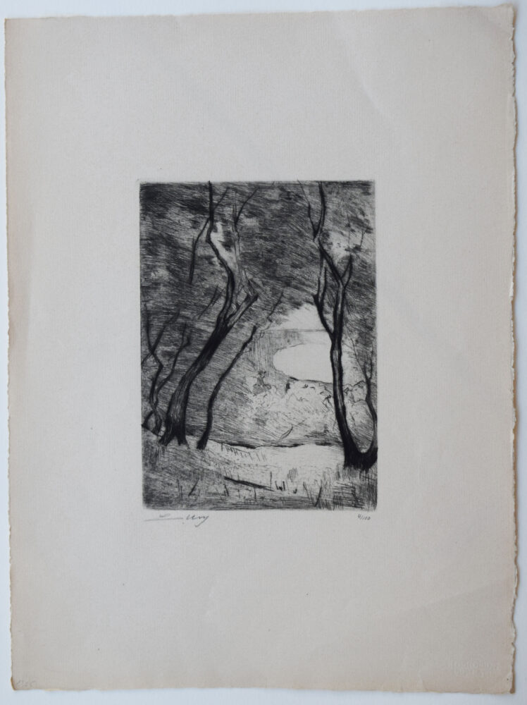 This original etching and drypoint is hand signed in pencil by the artist “L. Ury” at the lower left margin.