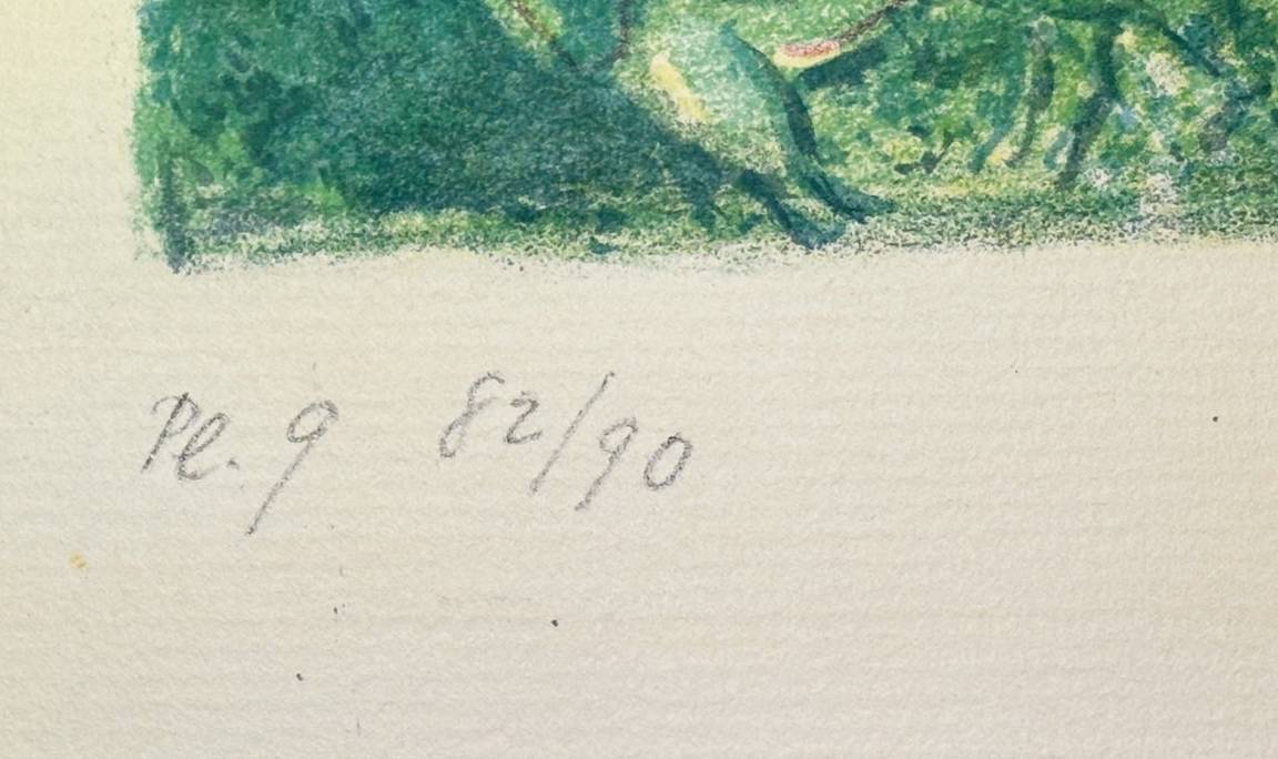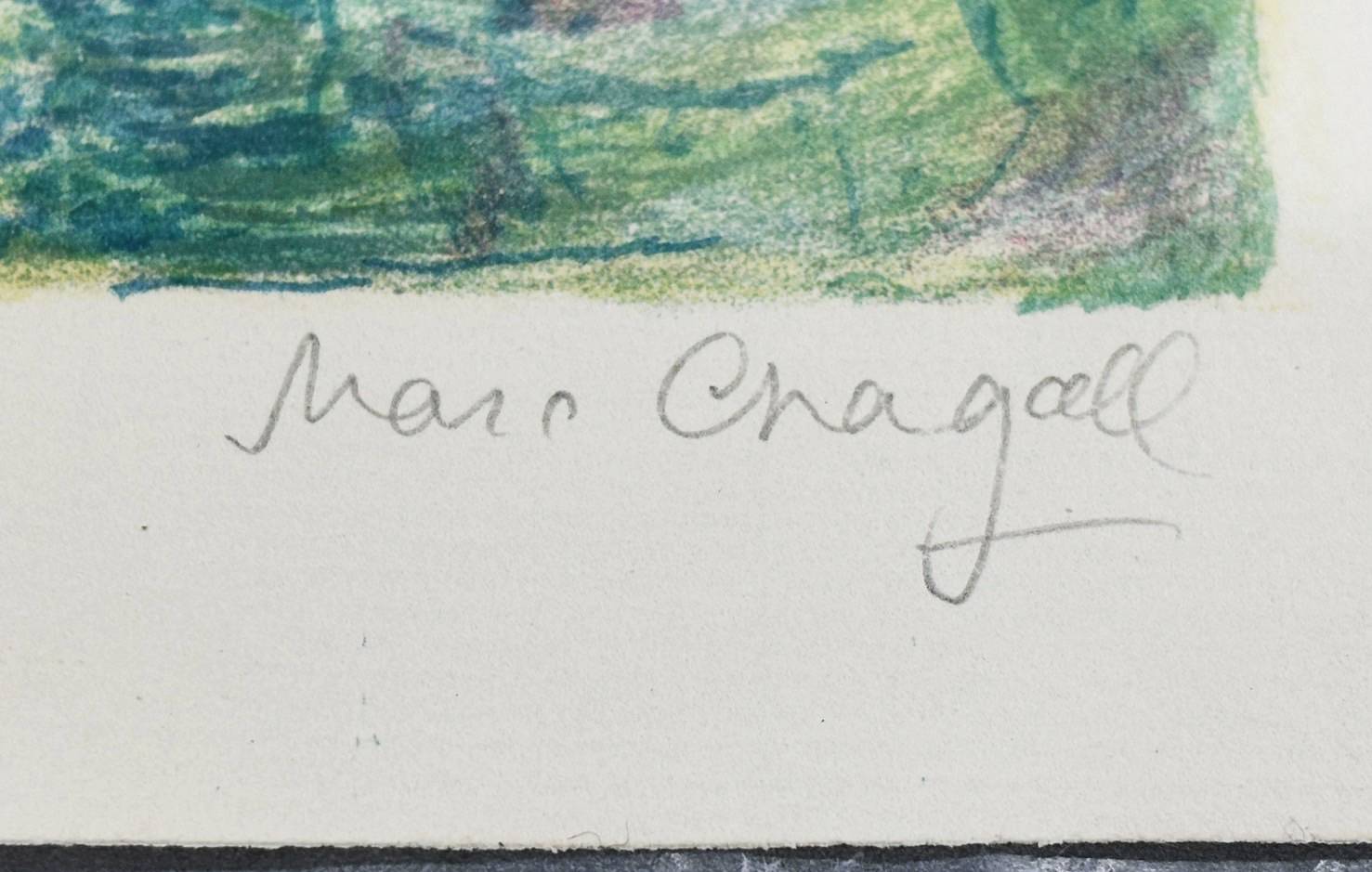 This lithograph is marked Plate 9 and numbered 82/90. It was published by Pantheon, New York, as part of the Arabian Nights portfolio. The work measures 42.5 × 32.5 cm, is hand-signed, and is listed in Mourlot 44 and Cramer 18, confirming its place in the standard catalogues of Chagall’s graphic works.