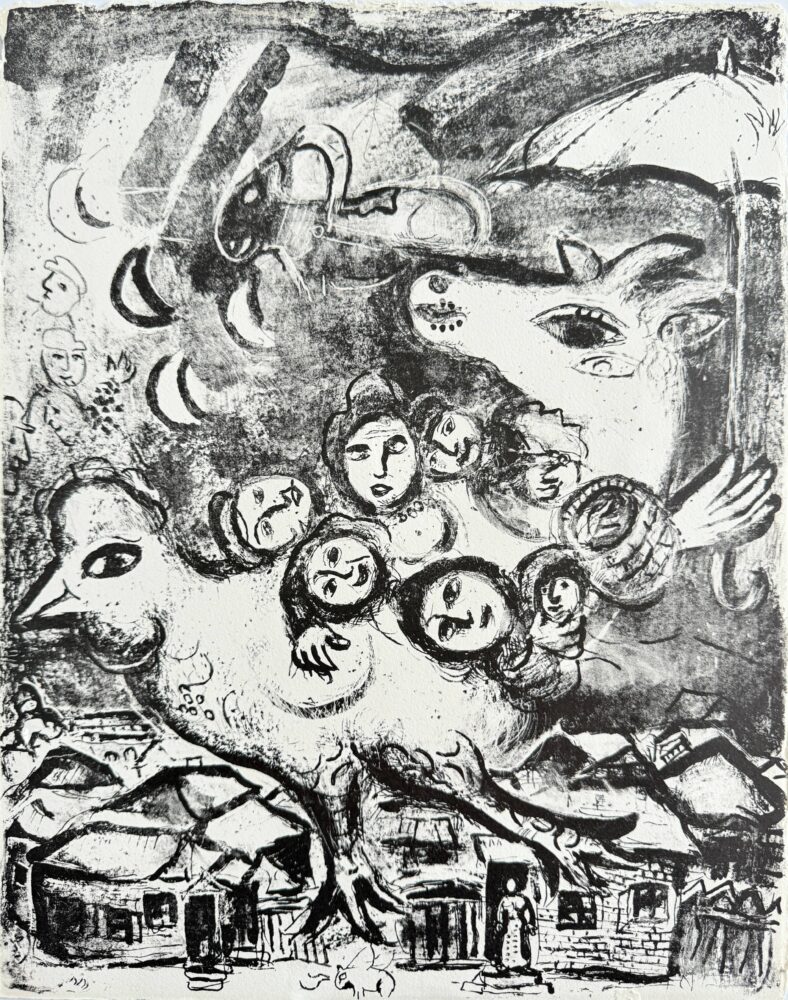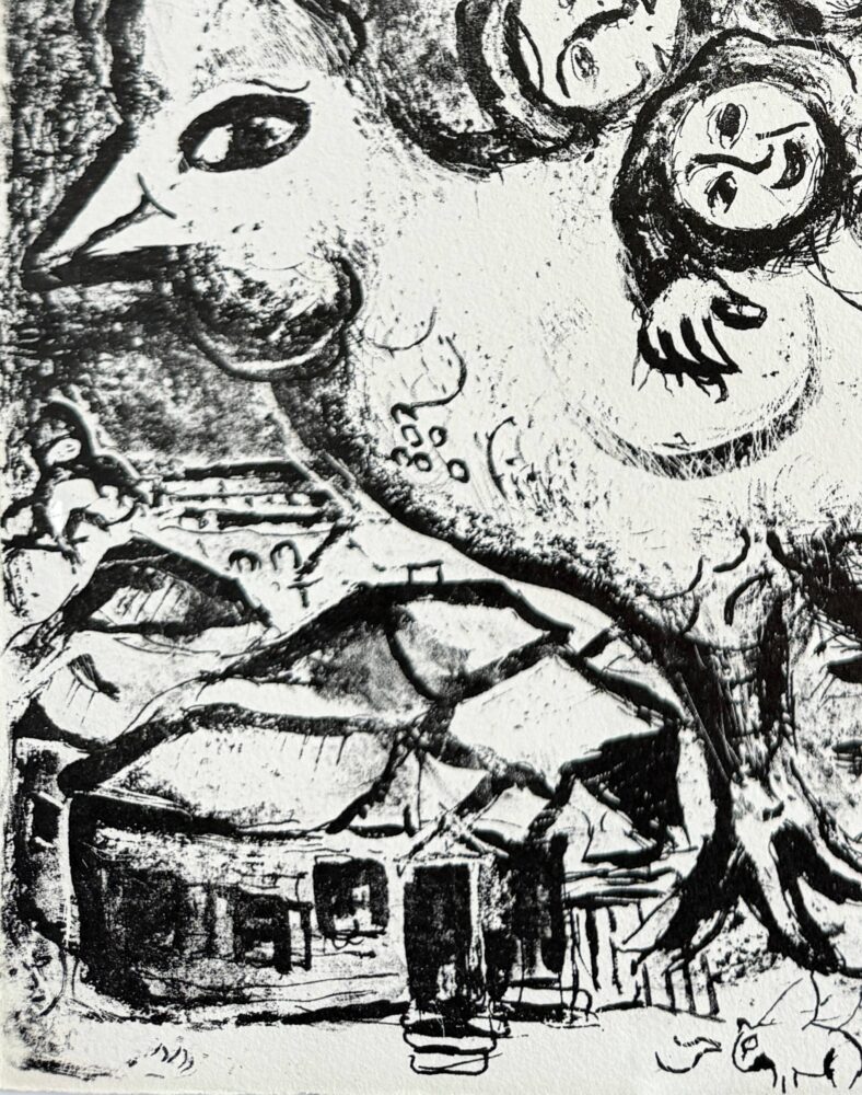 Marc Chagall began using printmaking techniques when he was 35 years old. He produced a lot of lithographs, etchings, and woodcuts while residing in Berlin, Germany, during the time. The art dealer Vollard hired Chagall in 1923 to illustrate the Bible, La Fontaine’s Fables, and The Dead Souls by Gogol.