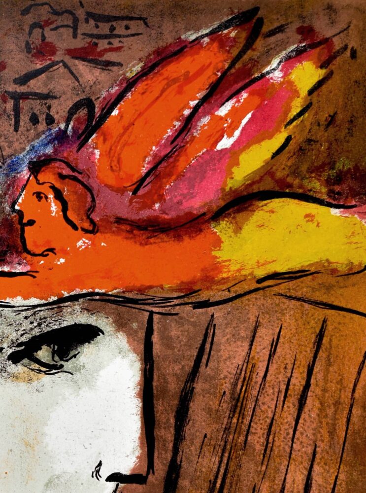 Marc Chagall began using printmaking techniques when he was 35 years old. He produced a lot of lithographs, etchings, and woodcuts while residing in Berlin, Germany, during the time. The art dealer Vollard hired Chagall in 1923 to illustrate the Bible, La Fontaine’s Fables, and The Dead Souls by Gogol.