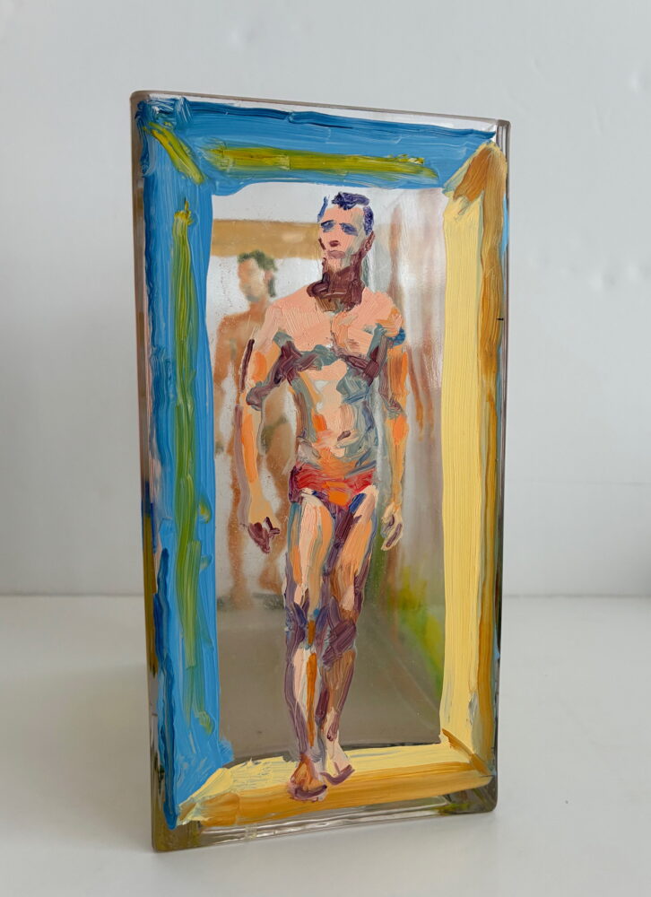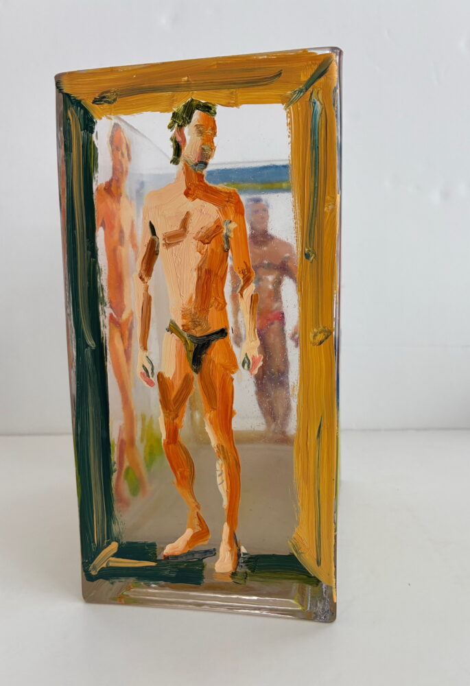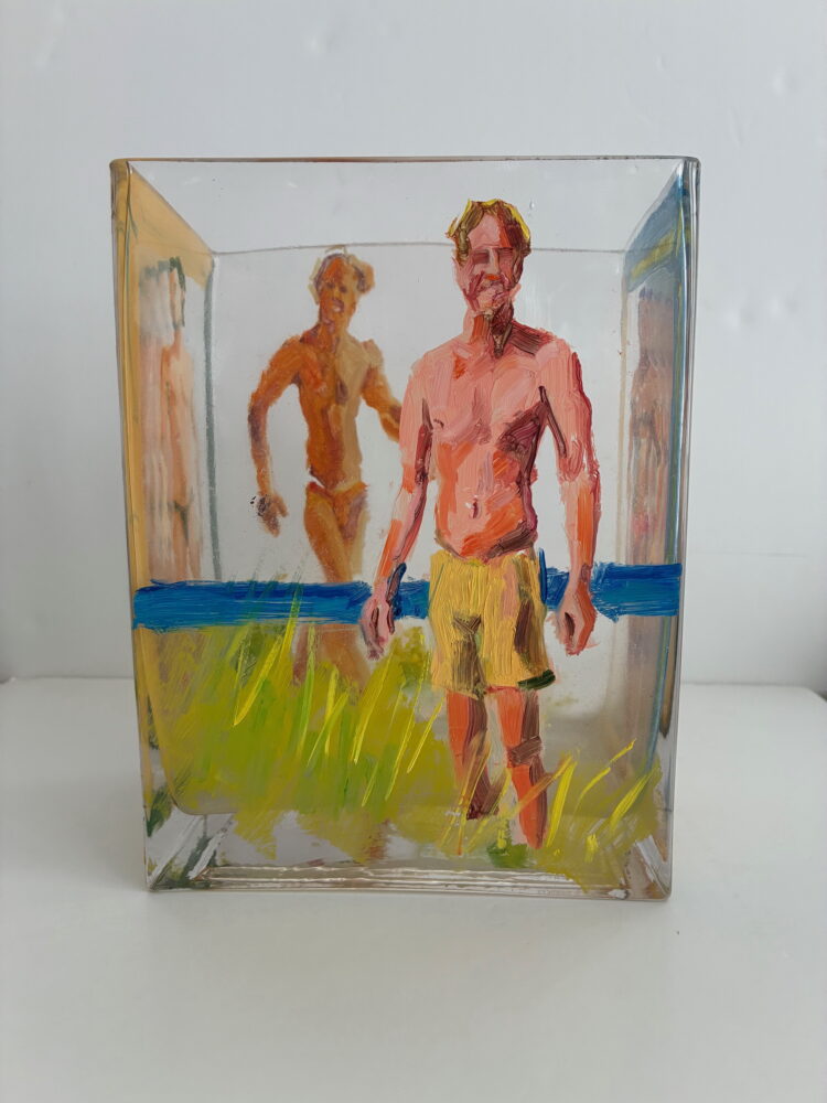 2009, oil on glass vase, painted on all 4 four sides, 8″ high x 6″ wide x 4″ deep