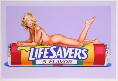 Ramos first produced prints in the 1960s with many of his prints being lithographs. As well as nudes alongside logos of famous products, Mel Ramos also produced prints of Superheroes and ladies in sixties’ fashion. Ramos also produced suites of prints of Marilyn Monroe.