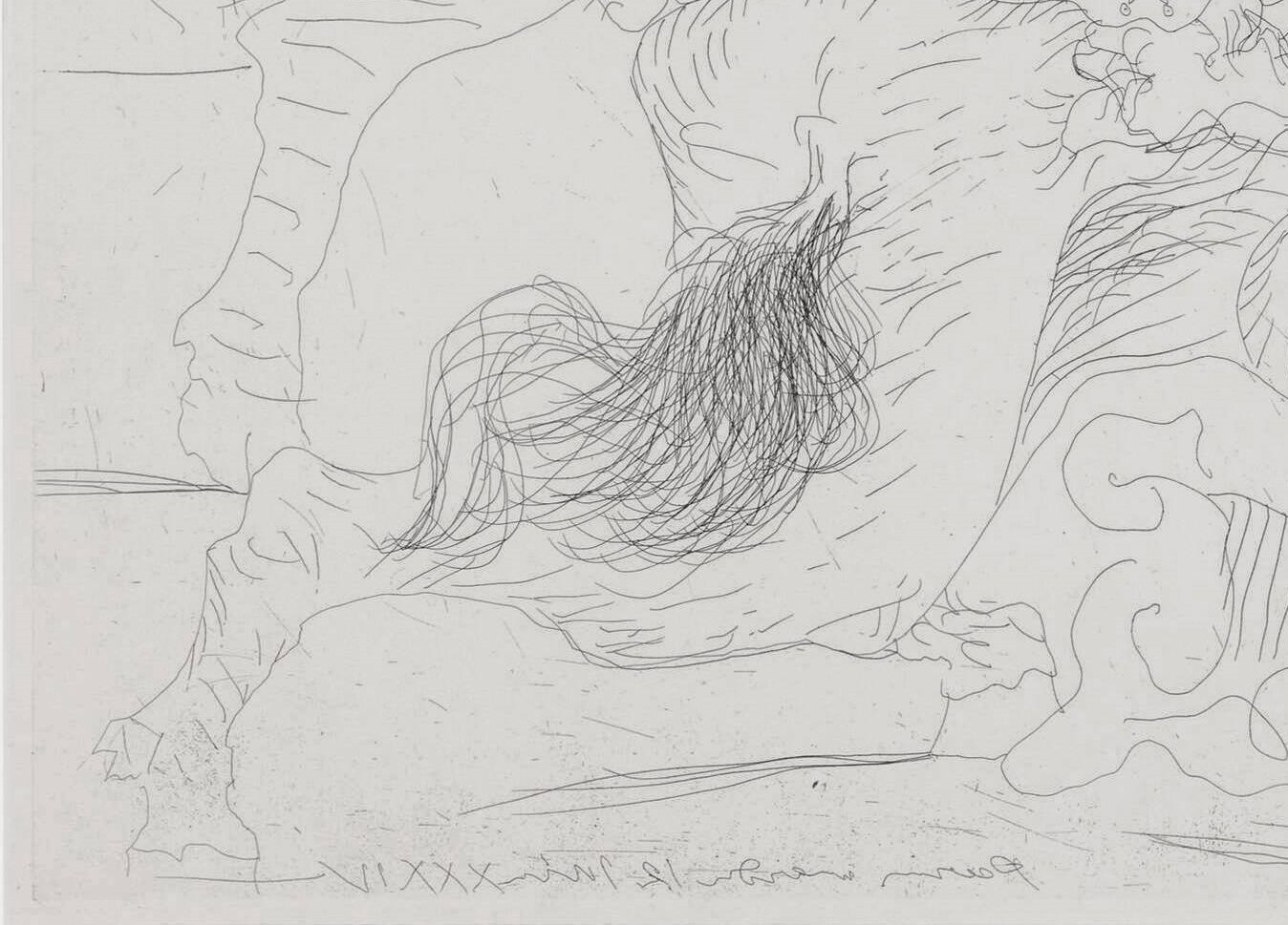 The edition of fifty proofs, commissioned by Ambroise Vollard, was never completed after the dealer’s death. Only a few impressions, printed by Lacourière and occasionally signed by Picasso, exist today. The large format and masterful execution foreshadow Picasso’s great etching achievements that would soon follow.
