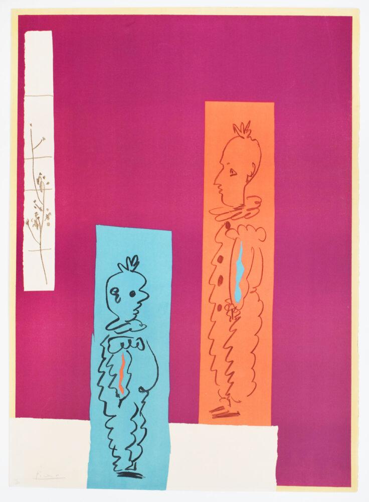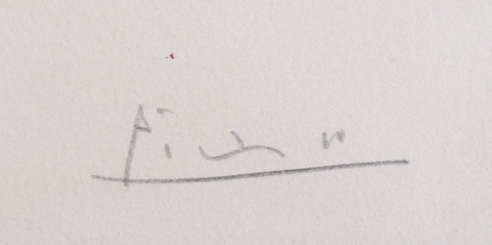 This original lithograph in colours is hand signed in pencil by the artist “Picasso” in the lower left image.