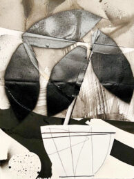 Paul Wackers paints with the tradition of the still life in mind. Window ledges and shelving units busy with potted plants, colorful vessels, and abstract knicknacks fill his compositions, which seem to vibrate with the activity of someone’s everyday routine. In Grow in Place and In the Waiting Room, Wackers focuses this ability to distill order from the chaos of a flower arrangement – capturing the levity of a field in motion to contrast the tightly cropped interior space of each two-toned backdrop.