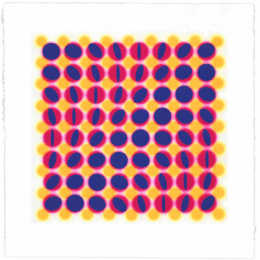 The result of his interest and research into the experience of looking, Monaghan’s work demands that the viewer actively participate in the dialogue. Every movement, tilt of the head or squint of an eye tests the ability to keep up with his inventions. The aesthetic pleasure derived is not just visual, but cerebral. Almost all of his work is comprised of colour planes attached to a single colour background. Considering the self-imposed limitations; the colour, size, rhythm and compositional associations have presented a complete variety of expression which, in turn, has proven to be infinitely adaptable. He articulates and orchestrates his colours to contrast and interact, while phrasing and placing complimentary elements. The desired effect is to make the viewer question what is real, and what is imagined; what is the foreground and background and why are the colours and shapes shifting. The work is a personal exploration of the relationship between two and three dimensions and the illusions that result from that exploration.