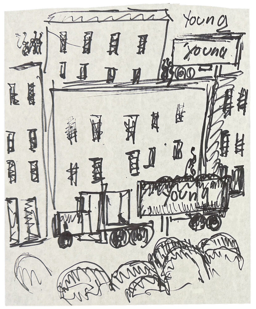 • Young on the Block (framed original drawing on paper) by Purvis Young
