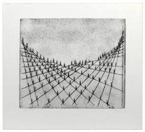 Working across various media, Richard Artschwager (1923 – 2013) specialized in the relationship between perception and deception. His print Liebespaar (Lovers), 2005, hints at two lovers embracing and is drawn from a series of works in which the artist focuses on a material he has used throughout his career to explore the tactility of the visual experience: rubberized horsehair.