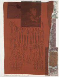 Robert Rauschenberg, an American born in 1925, started producing painterly prints in the early 1960s that contained pictures he cut out of magazines and newspapers. Nearly ten years prior, he had created pieces he dubbed “Combines,” which are fusions of painting and sculpture that embrace the noise of daily life and contrast the solitary canvases of abstract expressionism. The ordinary was also introduced in Rauschenberg’s prints in a variety of ways, such as the water ring left by a drinking glass, the embossment from a coin, or the traced contour of a cane. By reintroducing representation into the avant-garde, the artist revived a vibrant visual language. “What he invented above all was…a graphic surface that let the world in again,” wrote art historian Leo Steinberg.