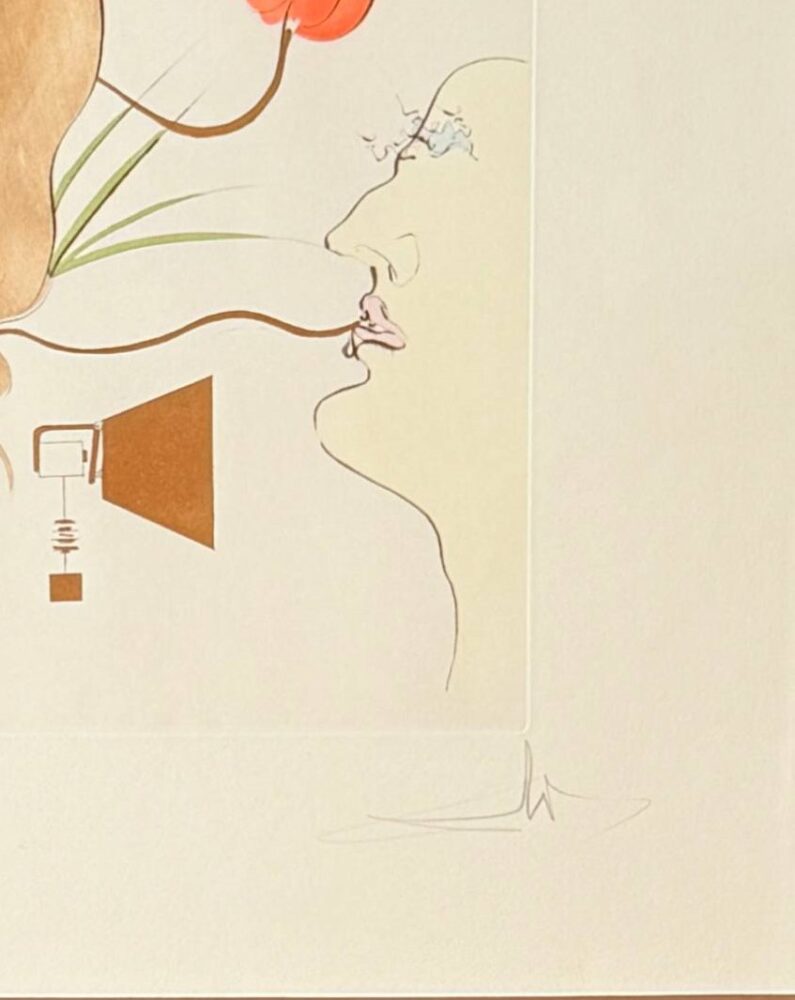 Printed on fine Arches paper using drypoint and stencil techniques, the work shows Dalí’s great technical skill and attention to detail. Published in Paris and hand-signed by the artist, it belongs to a limited edition of 450.