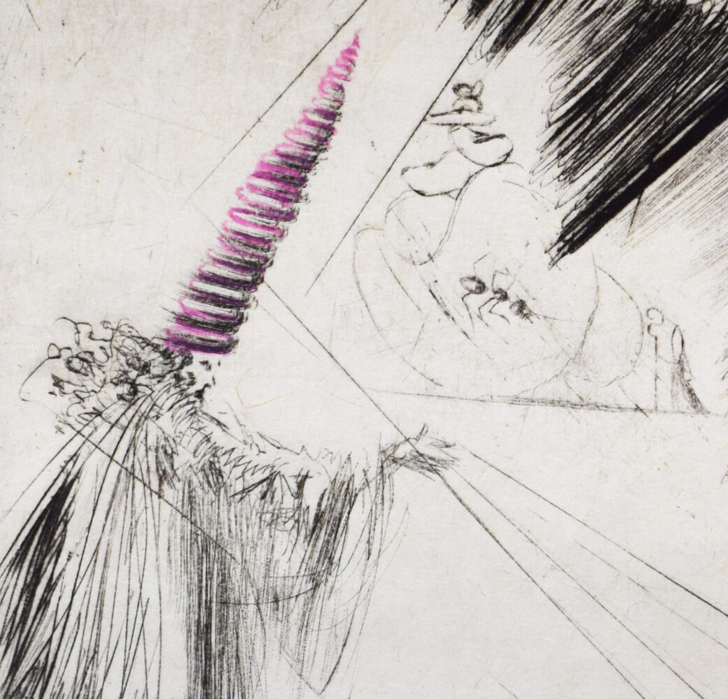 This original hand-coloured etching is hand signed in pencil by the artist “Dalí” at the lower right margin.