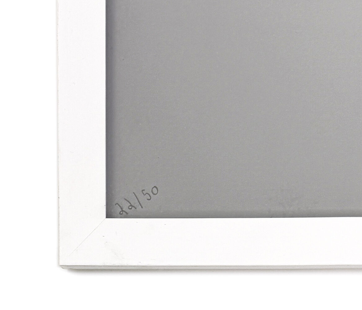 8 color screen print on Mohawk Supreme 130lb paper. Hand signed lower right by Sean Gannon. Hand numbered 22/50 lower left. Sheet size: 22 x 32.9 inches. Frame size: 23.5 x 34 inches. Published by Moosey Art, United Kingdom.