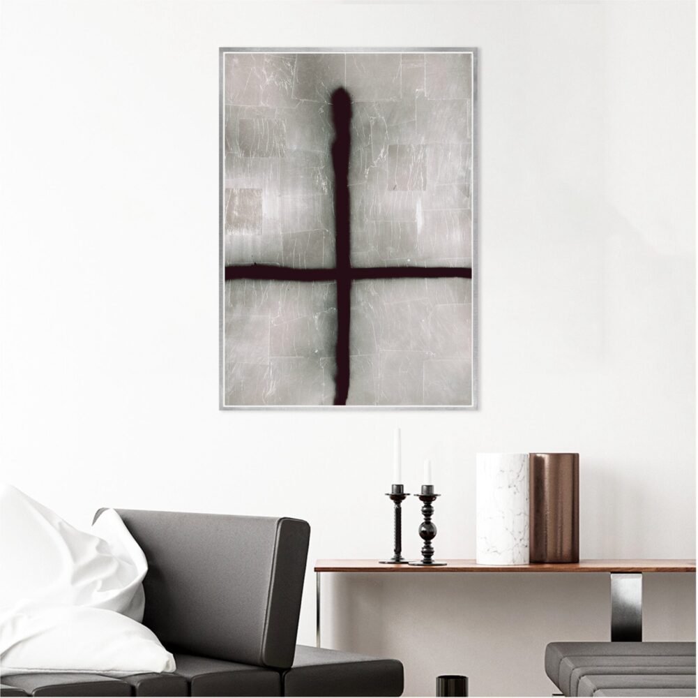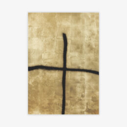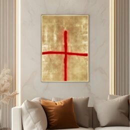 This series by German–Mexican artist combines precious metal leaf with raw spray-painted gestures. Two lines—red or black—intersect to form a cross, evoking both minimalist composition and spiritual symbolism. The contrast between refined materials and impulsive mark-making reflects a tension between faith and doubt, permanence and immediacy. Each work stands as a quiet yet powerful meditation on belief and form.
