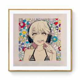 “Anywhere Door (Dokodemo Door) In The Field Of Flowers, 2018” is a vibrant and iconic work by Takashi Murakami, featuring his signature floral universe. This colorful offset lithograph on smooth vellum paper demonstrates the artist’s mastery in creating joyful and captivating compositions.
