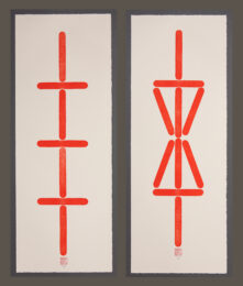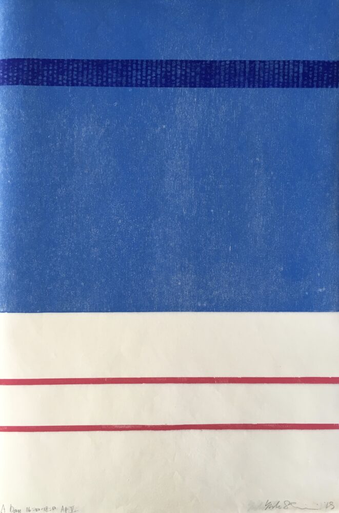 12 handprinted woodcuts in a handmade cardboard portfolio. Each print represents a period of 2 hours in a 24 hour cycle. These prints a mix of Ukiyo-e and European printing techniques. Reflecting the artist’s cultural background living in Europe as a Japanese person. This portfolio is available as a single work or individual prints acan be acquired for £500 each.