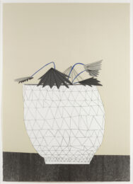 Jonas Wood is a contemporary American artist celebrated for his vibrant and distinctive paintings, often featuring bold patterns, flattened perspectives, and a focus on everyday objects and interiors. Drawing inspiration from a variety of sources, including domestic scenes, sports, and art history, Wood’s work merges a sense of nostalgia with a contemporary aesthetic, establishing him as a notable figure in contemporary painting.